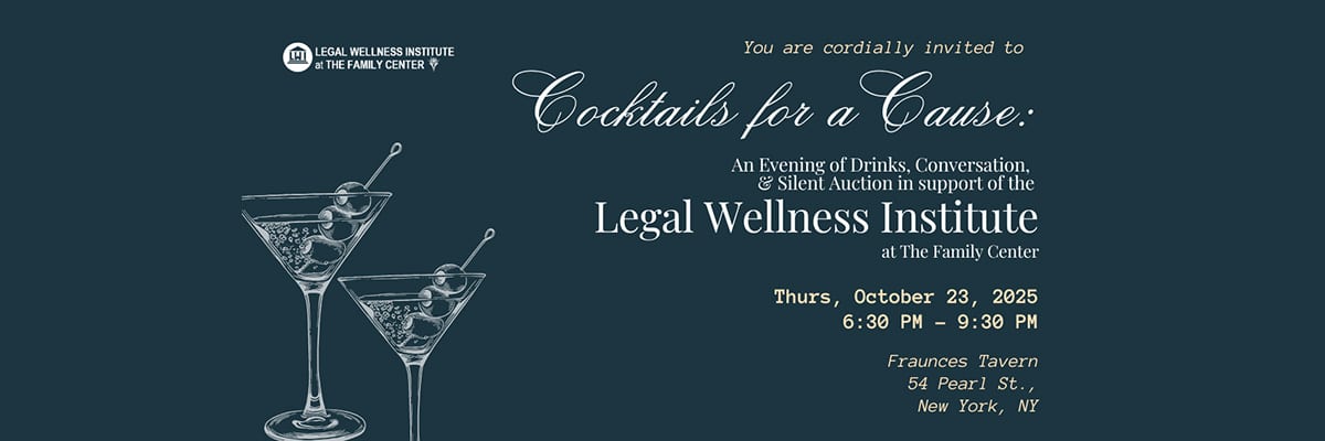On October 23rd, The Family Center and its network of ardent supporters gathered at Fraunces Tavern for Cocktails for a Cause, a fundraising event honoring the work of our Legal Wellness Institute.